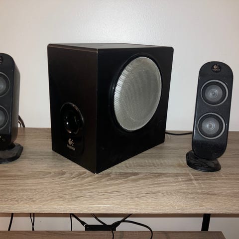 Myydään siistit ja täysin toimivat Logitech 2.0 -pöytäkaiuttimet.