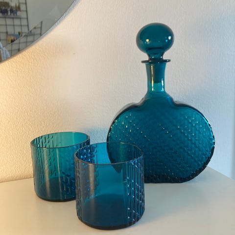 Nanny Stillin upea ja iso turkoosi Flindari karahvi 60-luvulta ja Riihimäen tuotantoo...
