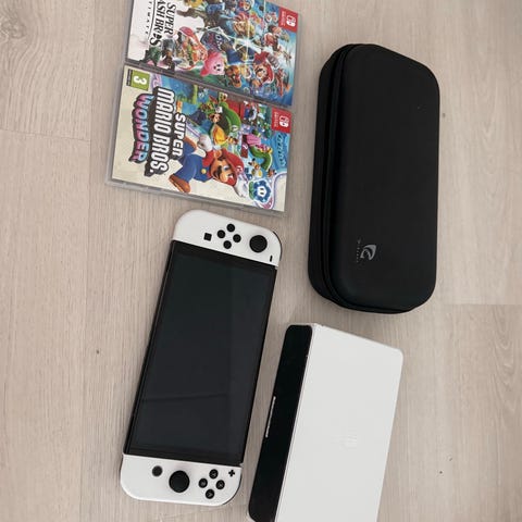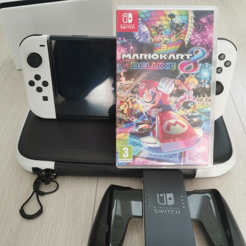 Nintendo Switch oled -pelikonsoli ja ohjaimia