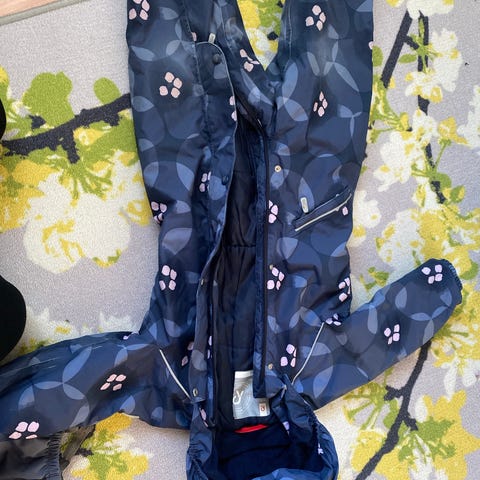 Lämmin toppahaalari, koko 92. Jalkalenksut puuttuvat, mutta napit tallella. Polvet ja peppu täysin ehjät.