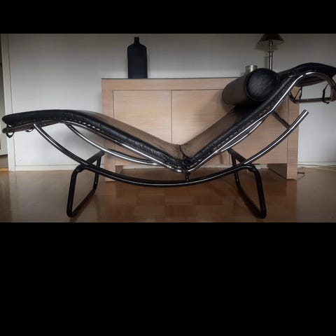 Mustapintainen yhden hengen lepotuoli / divaani, verhoiltu nahalla. Tuolissa on selkeä muotoilu ja se sopii rentoutumiseen tai lepäämiseen. Materiaali on nahka, väri musta.