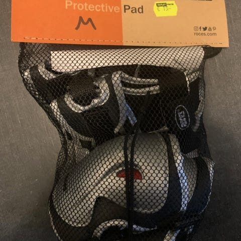 Inline Skate suojasarja rullaluisteluun. 6-osainen setti, joka sisältää ranne-, kyynär- ja polvisuojat. Väri musta. Koko L/XL. Toimitetaan verkkopussissa säilytystä ja kuljetusta varten.