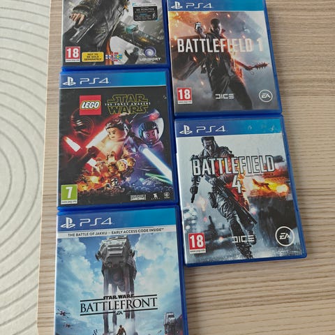 PS4: LEGO SW Force Awakens, Battlefield 1 ja 4, SW Battlefront, Watch Dogs.