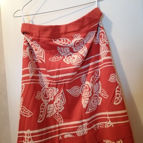 Suomessa valmistettua vintage-Nansoa. Kaunis kukkakuosi tummalla pohjalla, sävyinä lila ja pehmeä keltainen. Miellyttävää, joustavaa trikoota ja kauniisti laskeutuva malli. Oikein siistissä kunnossa.