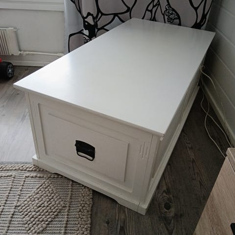 Tyylikäs arkkupöytä muuton alta pois. itse tuunailtu, eikä samanlaista varmasti tule vastaan.