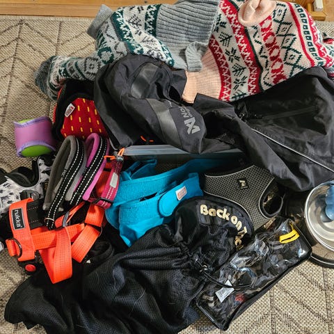 Koiran ulkoilutarvikkeita