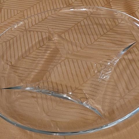 Matala lasinen / kristallinen lautanen / tarjoiluastia. Halkaisija noin 35,5 cm.
