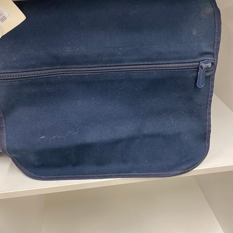 Hyväkuntoinen vanha tummansininen Marimekon laukku. Säädettävä olkahihna,laukun sisällä kaksi samansuuruista taskua. Olkahihnan pituus pisimmillään n. 110cm,lakun korkeus 18cm,leveys 23cm.
