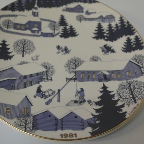 Joululautanen 1979 sinivalkoinen keramiikkalautanen