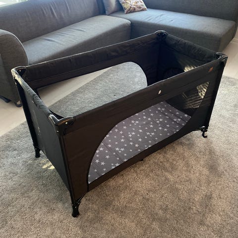 Lastentarvikkeen matkasänky siistikuntoisella patjalla. Toimiva ja helppokäyttöinen. Säilytyspussia tähän ei ole. Nouto Lieto.