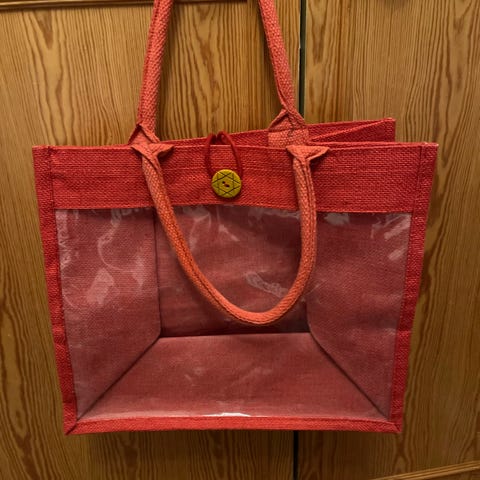 Kangaslaukku naisille. Laukku on valmistettu kankaasta ja siinä on olkahihna. Monivärinen pinta, jossa keltaisen, oranssin ja tummien sävyjen kuviollinen yhdistelmä. Laukussa on läppä ja nappikiinnitys. Sopii arjen käyttöön olkalaukkuna tai kassina esimerkiksi kaupungille tai asiointireissuille. Laukussa punainen vuori. Leveys 33 cm, korkeus läpän kohdalta 27 cm. Olkanauhan pituus 87 cm.