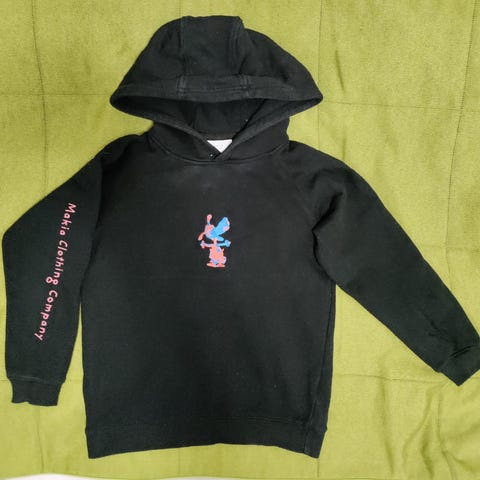 Jo enemmän käytetty Makian musta välikausitakki kokoa 134/140cm, meni meillä vielä 146cm sisävaatteita käyttävälle lapselle. Käytönjälkeä jo näkyvissä. Etupuolella taskun kohdilla kankaassa jälkeä. Toisesta hihasta puuttuu kiristystarra. Hihassa ja selässä tahraa. Takapuolella alareunasta ommelta purkautunut.