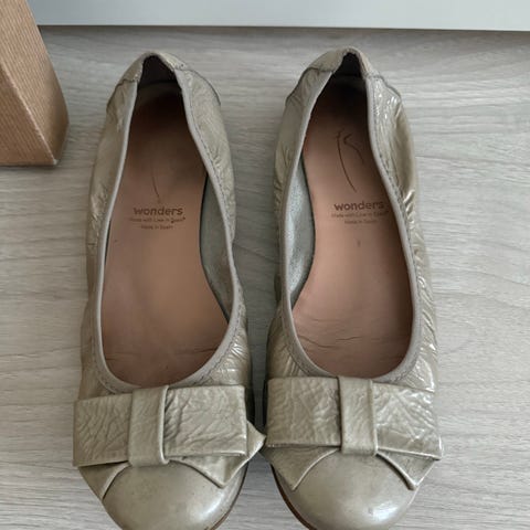 Wonders, nahkaiset balleriinat. Koko 37, sisämitta 24 cm. Materiaali AITOA NAHKAA, sisältä ja ulkoa. Kuminen pohja antaa pehmeän askelluksen. Käytetty muutaman kerran ja kantaan lisätty liukueste. Erittäin hyväkuntoiset!