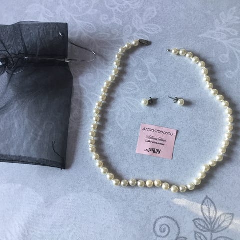 Nora Norvay helmikaulakoru ja helminappikorvikset.