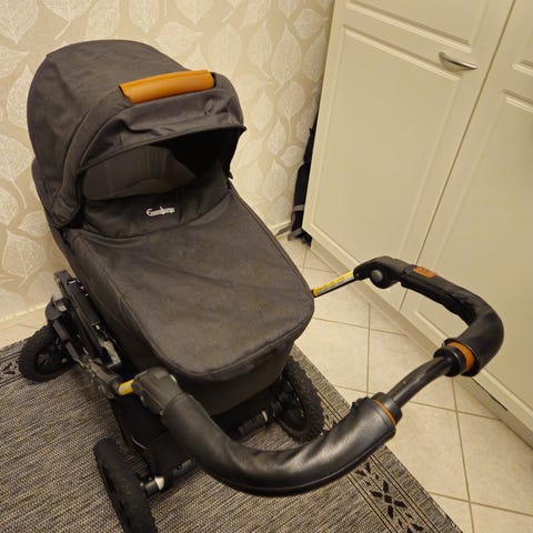 Ratasosasta edellinen omistaja leikannut laput irti.Kuomun sisäosassa jotain likaa,en ole yrittänyt puhdistaa,tullut meidän käytössä,EI ole hometta tmv. Ratasosaan EI ole jalkapeitettä.Vöistä hukkunut edellisen omistajan käytössä olkapehmusteet,emme ole kaivanneet.Ratasosassa kolme kallistuksen säätöä.Tuuletusmahdollisuus ratasosassa,tarroin.
