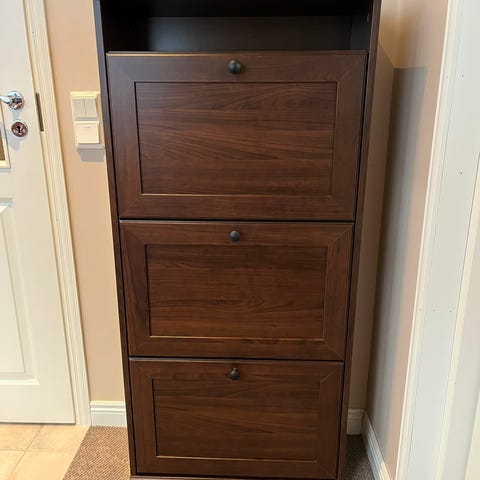 Myydään ehjä ja tukeva Ikea Brusali kenkäkaappi. Omaan kotiin liian suuri, ehjä, tukeva, siisti. Muutama käytön jälki, mutta yleisilme todella siisti, kuten kuvista näkyy.