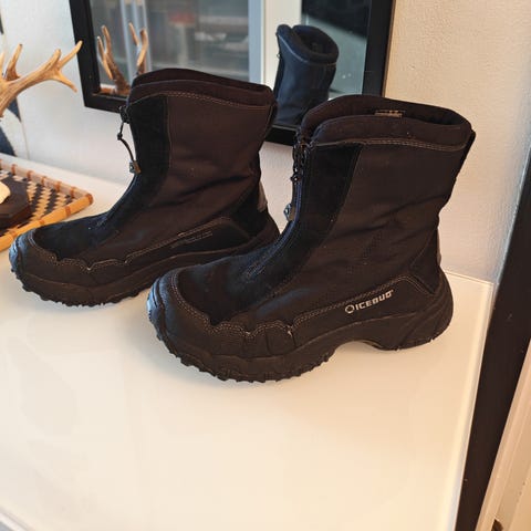 Icebug Solus W BUGrip ruskeat varrelliset nastakengät. Kengissä on sivuvetoketjut pukemisen helpottamiseksi.