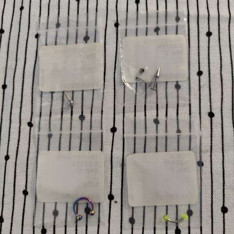 Käyttämättömät korut. Kirurgin terästä. Myydään kaikki kerralla samassa paketissa. Nänni ja napakoruja.