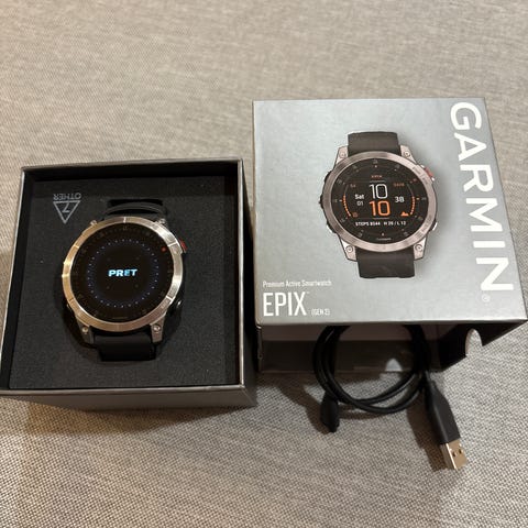 Garmin Epix Pro älykello mustalla rannekkeella. Kellossa on värillinen kosketusnäyttö, GPS-toiminnot ja rannesykemittaus. Sopii liikunnan seurantaan, navigointiin ja päivittäiseen aktiivisuuden seurantaan. Kellon takaosassa on optinen sykesensori ja latausliitin. Ranneke on säädettävä ja valmistettu muovimaisesta materiaalista, joka soveltuu urheilukäyttöön.