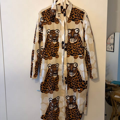 Marimekko migot perenna mekko koko 42. Pituus 133cm ja ka-ka 51cm. 100% kuproa. Sivuilla taskut ja takana lyhyt veroketju. Uusi ja käyttämätön, hintalappu paikoillaan.