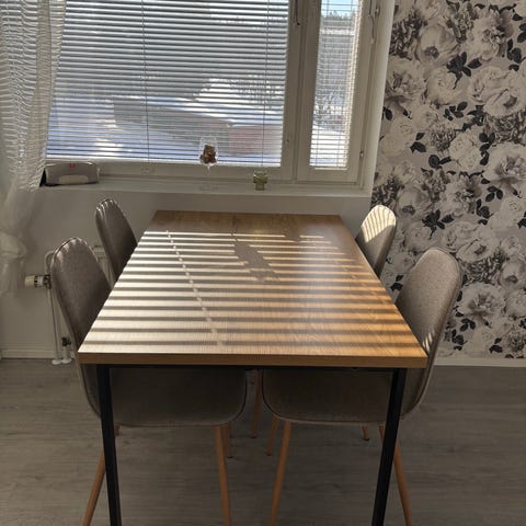 Iskun ruokapöytä ja 4 tuolia.