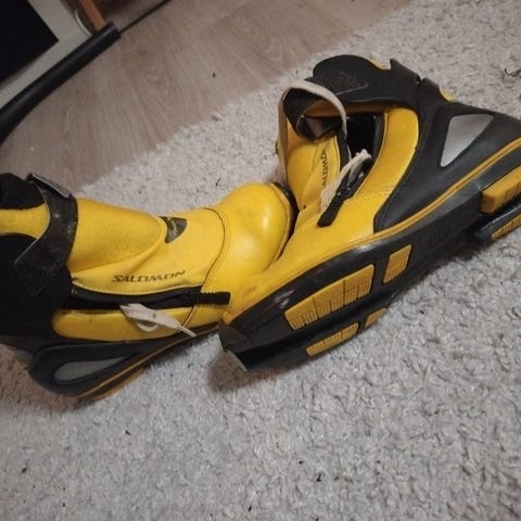 Salomon XA vaellushiihtomonot. Hyvin hiihdetyt, mutta edelleen jämäkässä kunnossa. Etuläpän sisällä oleva kalvo rapistunut, enemmän ulkonäköhaitta. Rapistuminen näkyy kuvissa. Koko noin 45, läpissä olevat kokomerkinnät kuluneet pois. Pohjallisen mitta 29-29.5.