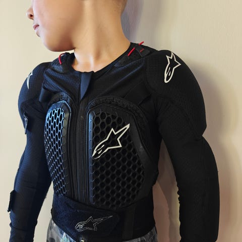 Alpinestars Bionic Action Jacket suojatakki koossa L. Musta suojatakki, jossa integroidut kovamuoviset suojat rintaan, selkään, olkapäihin ja kyynärpäihin. Materiaalina pääosin polyamidi ja polypropeeni. Sopii esimerkiksi moottoripyöräilyyn, maastopyöräilyyn tai muuhun lajiin, jossa tarvitaan ylävartalon suojaa. Edessä vetoketju ja säädettävä vyötärövyö.