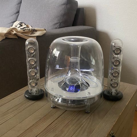 Kaiuttimissa pieniä käytön jälkiä.
