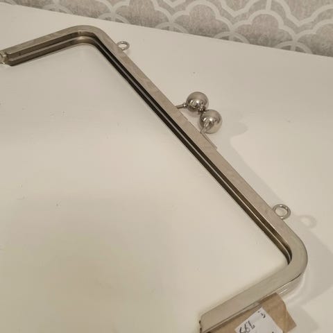 Metallinen laukunkehys, jossa metalliset ripustuslenkit olkahihnaa varten. Käsitöihin, tee itse laukku! Leveys 20 cm.