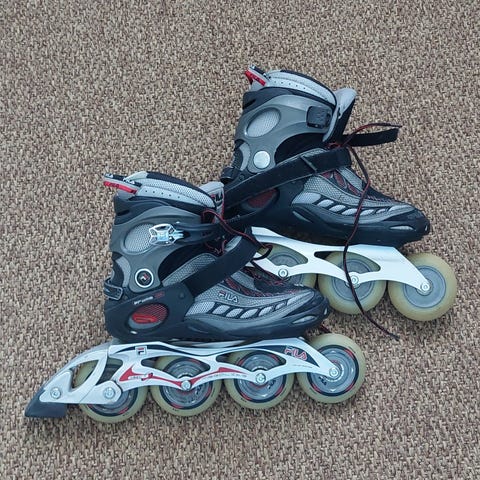 K2 Moto 90 rullaluistimet rullaluisteluun. Koko EU 42 (US 9, UK 8, 27 cm). Väri musta-oranssi, usean renkaan alumiininen runko ja kovakantinen kenkä, jossa säätöhihnat ja soljet jalan tukemiseen. Soveltuvat aikuisten rullaluisteluun ja kuntoiluun tasaisilla alustoilla.