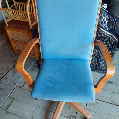 Puu nojatuoli verhoiltu istuin ruskea raidallinen