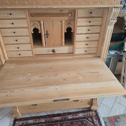 Pöytä on hyvin karu ja yksinkertainen. Paksua mäntypuuta. Tukeva. Ei nitku. Ei laho. Ei haise. Kuivassa ja lämpimässä paikassa, käytössä ollut. Rungossa tummaa maalia vielä jäljellä. Kannessa ei ole ilmeisesti koskaan mitään käsittelyä ollutkaan. Pituus noin 90, leveys 43 ja korkeus 73. Laatikko liukuu hyvin ja lukko toimii erinomaisesti. Tämä on niin upea, uniikki esine menneiltä vuosilta että on suuri ihme, että tämä on säilynyt. Vielä näin hyvässä alkuperäiskunnossa. Edelleen täydessä käyttökunnossa. Tämä on hyvin monikäyttöinen pöytä kokonsa ja muotonsa vuoksi. Tälle EI saa tehdä mitään tuunauksia tai fiksauksia! Tätä ei myydä jos ostaja haluaa vaikka maalata tämän. Tämä täytyy säilyttää tässä muodossaan eikä pilata mitenkään. antiikki pöytä puupöytä sivupöytä apupöytä työtaso old antique table north lapland petsamo näsykkä vienankarjala uhtua kalevala kansallisromanttinen maalaisromanttinen rustiikkinen talonpoikainen wooden solid wood rustic rustiikkinen