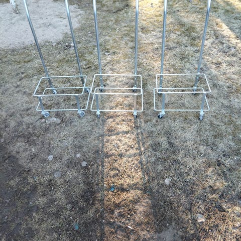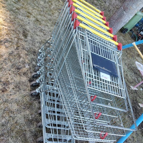 2 kpl Metallinen ostoskori, jossa neljä pyörää ja työntökahva. Soveltuu esimerkiksi tavaroiden kuljettamiseen myymälässä, varastossa tai muussa tilassa. Runko ja kori ovat metalliverkkoa, ja korin alla on taso lisäkuormalle. Pyörät kääntyvät, mikä helpottaa korin liikuttamista ahtaissakin tiloissa.