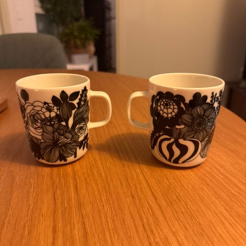 Myydään käyttämättömät Marimekon Oiva Siirtolapuutarha -kahvikupit (2dl). Nouto Hollolasta Salpakankaalta tai postitus.