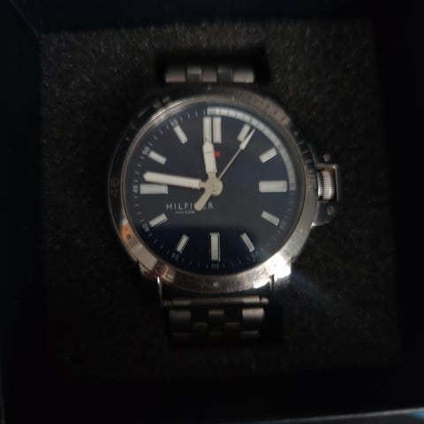 Tommy Hilfiger rannekello metallirannekkeella. Kellossa on musta kellotaulu kultaisilla yksityiskohdilla ja indeksimerkinnöillä. Ranneke on kaksivärinen, hopean- ja kullanvärinen metalli. Kellossa on analoginen näyttö ja sivupainikkeet lisätoiminnoille. Sopii käytettäväksi arjessa ja juhlatilanteissa.