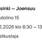 Otsikon lippu tulevan sunnuntain 09 junaan Joensuusta tikkurilaan