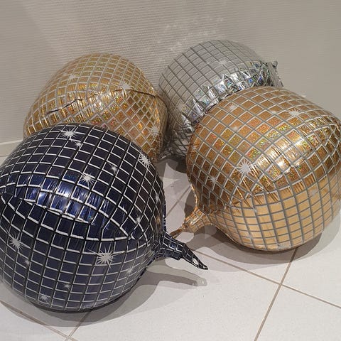 Annetaan kuvassa olevat ilmatäytteiset foliopallot, alempi seisoo omillaan ja ylemmässä kiinnitys ripustusta varten. Tarkemmat mitat kuvissa. Vain nouto Mannilasta.