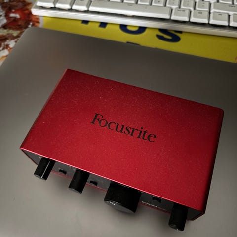 Alle 10 kertaa käytetty Focusrite Scarlett Solo 3rd Gen USB-äänikortti. Kolmannen sukupolven 2 sisään / 2 ulos USB-audiointerface, jossa yksi XLR-mikrofonitulo ja yksi instrumenttitulo etupaneelissa sekä linjalähdöt takapaneelissa. Laitteessa on gain-säätimet ja monitorointisäädin etupaneelissa sekä kuulokelähtö omalla äänenvoimakkuussäätimellä. Yhteensopiva USB-liitännän kautta tietokoneen kanssa äänitystä ja toistoa varten. Punainen metallikuori. USB-kaapeli tulee mukana.