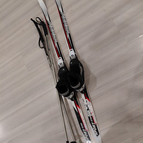 Peltonen sukset 120, Alpina-monot koko 30 ja One way sauvat 80cm. Rottefella-siteet. Kunto käytetty, suoraan päiväkotihiihdoista :) hinta kaikille yhteensä 40e. Kuvassa näkyvät suksisetin punaiset pidikkeet eivät kuulu kauppaan.