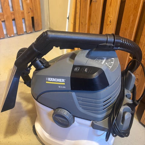 Kärcher tekstiilipesuri. Sopii esimerkiksi mattojen, sohvien ja muiden tekstiilipintojen puhdistukseen vedellä ja pesuaineella. Mukana tulee letku ja useampi suutin erilaisille pinnoille. Laite liitetään tavalliseen pistorasiaan ja siinä on säiliö puhdistusvedelle ja likavedelle.