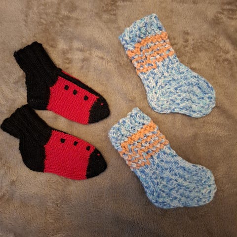 villasukat vastasyntyneelle tai 0-2kk, väri harmaa ja vihreä. Materiaalina villa.