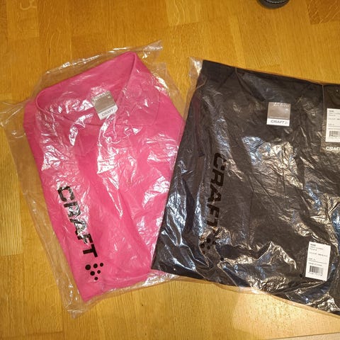 Väri kirkas pinkki, hihansuissa ja logossa keltaiset yksityiskohdat.