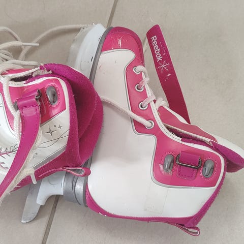Myydään Reebokin Glitter Girl -luistimet koossa 34. Kärkipiikit on viilattu pois. Muuten luistimet ovat oikein hyvässä kunnossa.