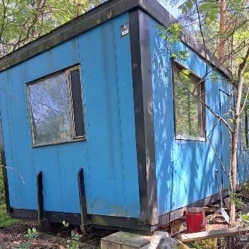 Myyntiin työmaaparakkiin tehty siirtotalli poneille. 15 neliötä noin 6mx3m ulkomitoiltaan,kaksi ikkunaa (päädyt), kanava puhallin ja kolme poistoilmaventtiiliä,ovessa tuloilmaventtiili. Mahdollisuus saranaporteilla laittaa puoliksi, muuten ei väliseiniä. Siirtolavaliskoilla. Ritilät ilkuinoissa ei kuulu automaattisesti kauppaan (koiraportteja). Saa myös tarjota.