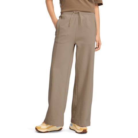 Kevyet, tyylikkäät ja mukavat leveälahkeiset naisten housut, joissa on sivutaskut. 100 % luomupuuvillaa. Väljä istuvuus.