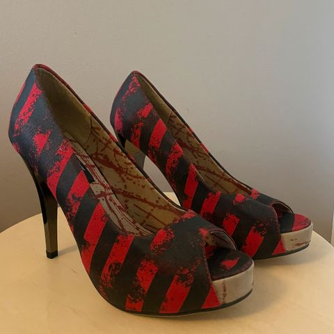 Myynnissä näyttävät leopardiprintti korkokengät, joissa tolppakorko ja platform.