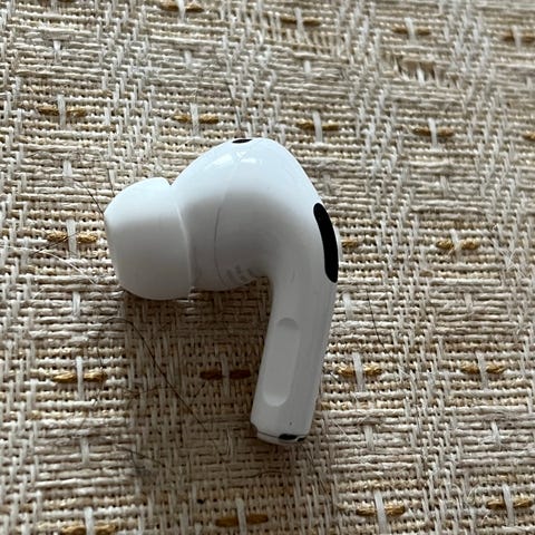 Apple AirPods Pro -nappikuulokkeet, väri valkoinen. Korviin asetettava malli silikonisilla korvasovitteilla. Langattomat Bluetooth-kuulokkeet Applen ekosysteemiin yhteensopiviin laitteisiin, kuten iPhoneen, iPadiin ja Maciin. Yhdessä kuulokkeessa merkitty oikean korvan (R) puoli. Soveltuu musiikin kuunteluun, puheluihin ja muuhun äänentoistoon arjessa.