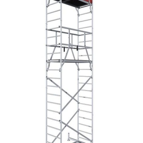 Alumiininen rakennusteline, kerran käytetty, max työskentelykorkeus noin 4 metriä eli jalkataso noin 2 metrissä.