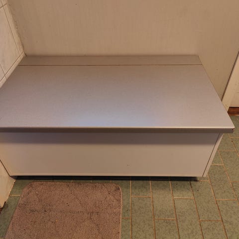 Ikea Molger penkki. Sopii myös kosteaan tilaan, mutta ollut meillä kuivassa.
