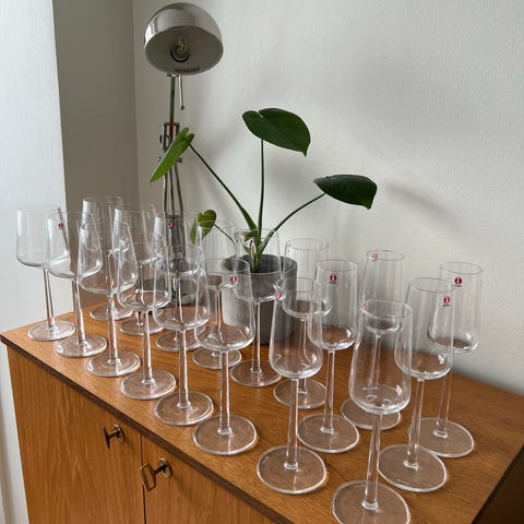 Iittala Essence viinilasi13cm korkeus 6cm halkaisija, kirkkaasta lasista. Korkeajalkaiset, läpinäkyvät lasit sopivat viinille ja muille juomille. Punaisen Iittala-logotarran ansiosta tunnistettavat. Soveltuvat arki- ja juhlakäyttöön kattauksissa. 2kpl.